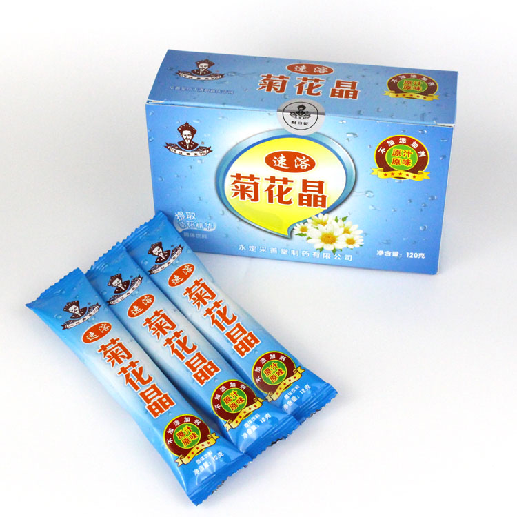 公司推出一款清涼飲品:菊花晶,規(guī)格:12克/袋*10袋/盒*60盒/件。精選地道的杭白菊為原料,采用現(xiàn)代科學(xué)生產(chǎn)工藝提煉,配優(yōu)質(zhì)白砂糖加工而成的固體飲料,保存了菊花的色、香、味,是一種天然的清涼飲品,也可兌在牛奶中飲用:該產(chǎn)品速溶、鮮亮清香、甘醇香甜。