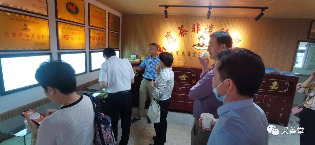 2021年10月28日,國家中醫(yī)藥管理局監(jiān)測統(tǒng)計中心主任李宗友、廈門市翔安區(qū)副區(qū)長程明、李時珍醫(yī)藥集團總裁楊明江一行到永定采善堂公司考察、調研,市、區(qū)有關領導陪同調研。
