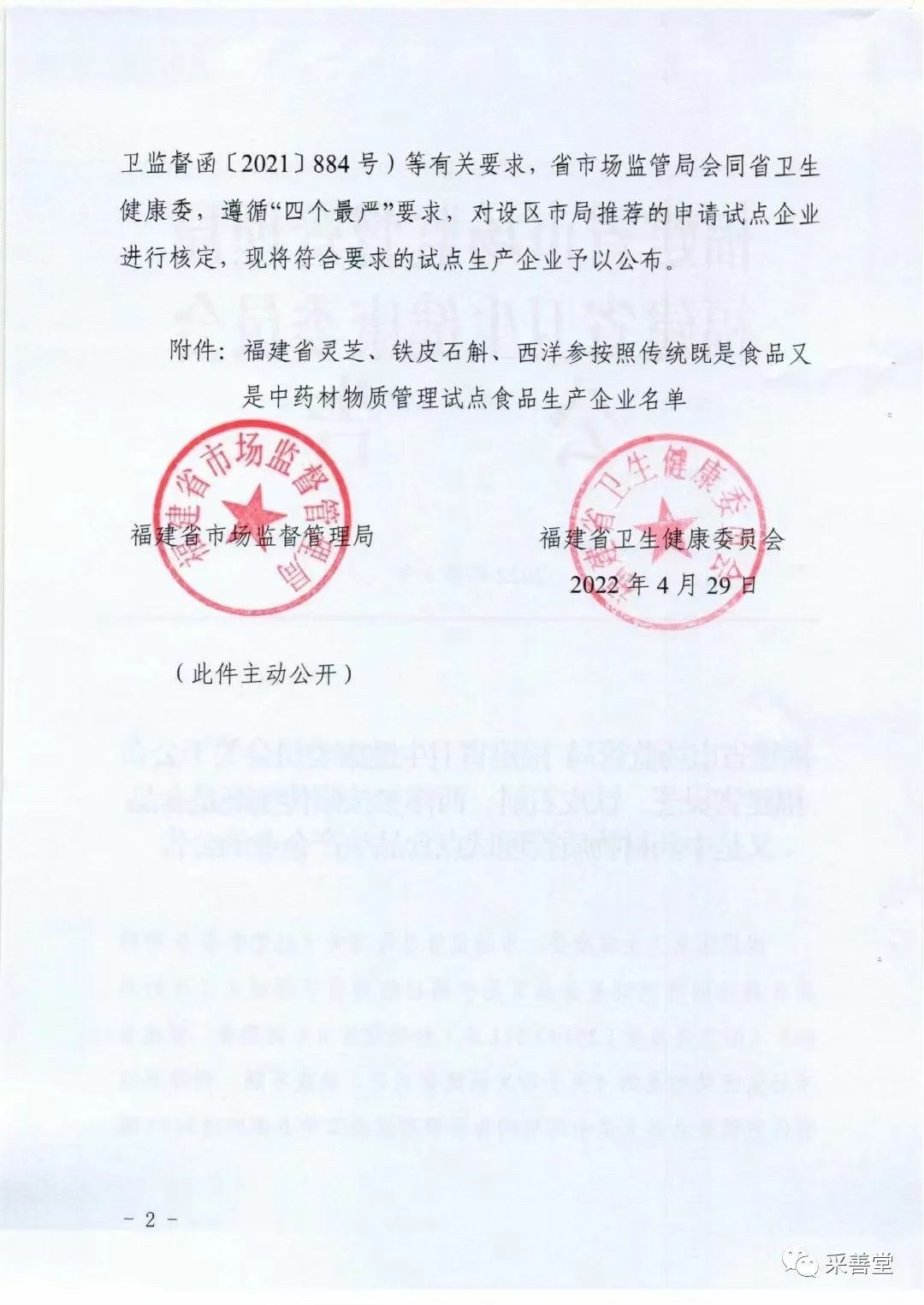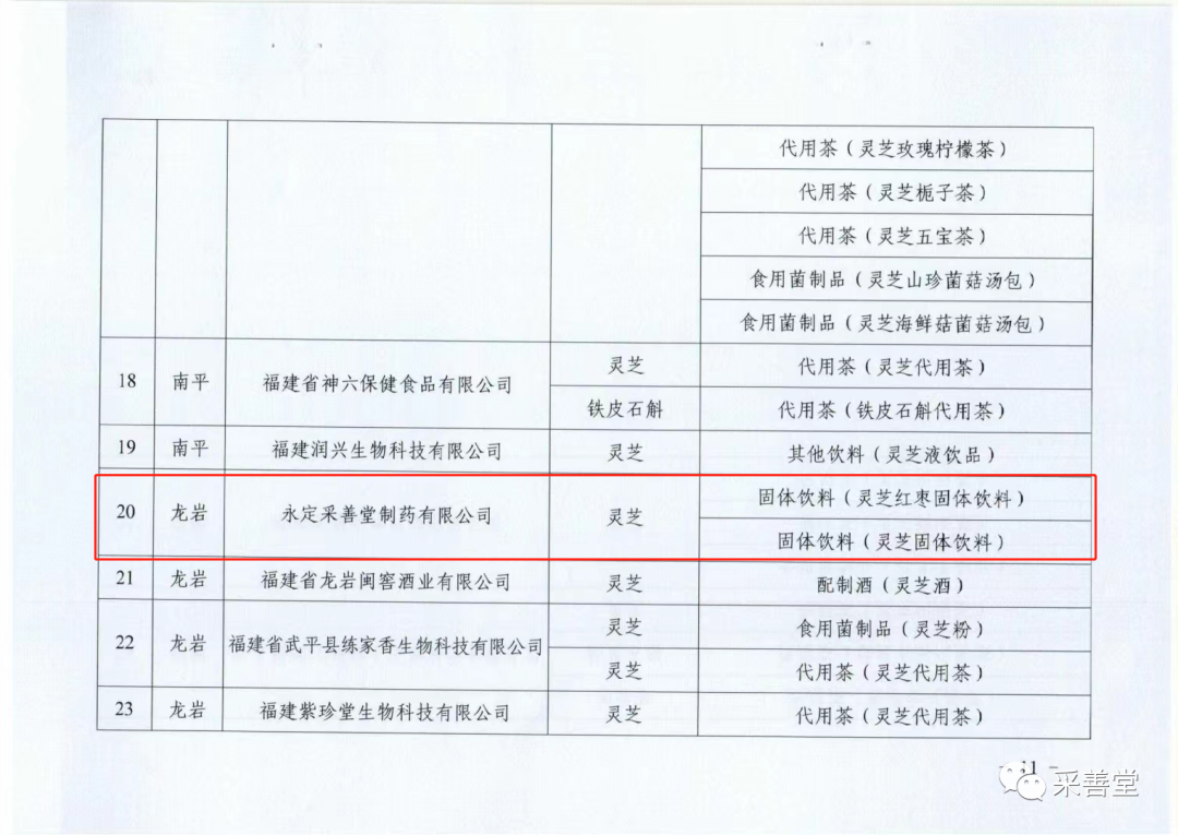 在各級(jí)領(lǐng)導(dǎo)的關(guān)心和支持下,采善堂公司經(jīng)過(guò)前期的不懈努力,成功申報(bào)福建“藥食同源”的靈芝試點(diǎn)生產(chǎn)企業(yè),對(duì)采善堂公司進(jìn)一步延伸及豐富產(chǎn)品線,拓寬銷(xiāo)售渠道,提升“采善堂”品牌整體形象具有巨大意義。同時(shí)也為推動(dòng)靈芝的種植、研發(fā)創(chuàng)新、市場(chǎng)開(kāi)發(fā),對(duì)服務(wù)鄉(xiāng)村振興,滿足人民群眾的營(yíng)養(yǎng)健康需求等方面,有著積極的促進(jìn)作用。