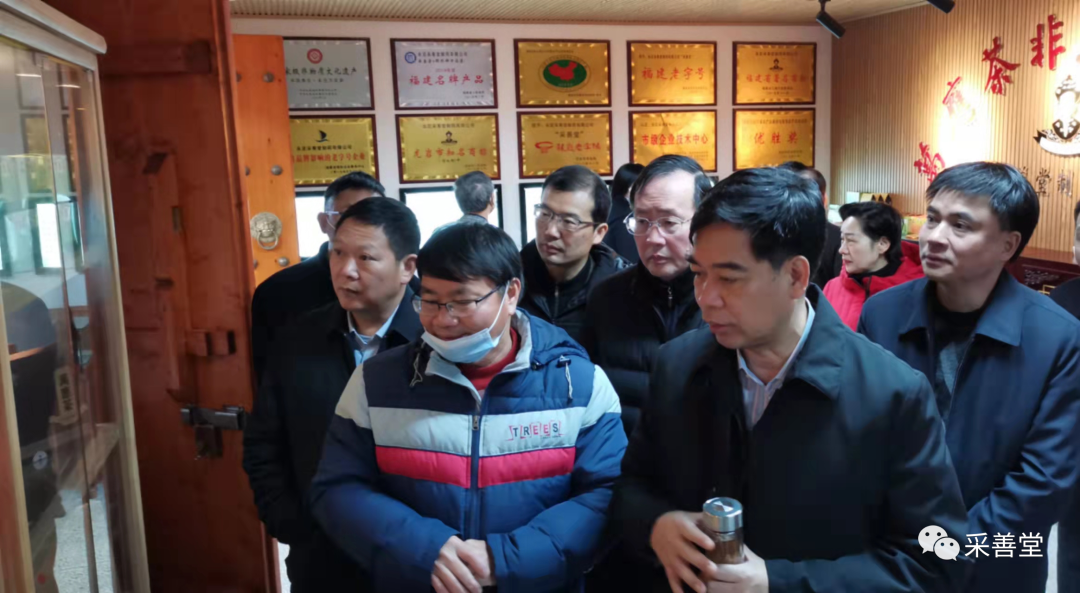 近日,省人大常委會委員、法制委主任委員薛云官一行來采善堂公司調(diào)研,同行的還有省人大法工委、省涉臺法律研究中心等相關(guān)領(lǐng)導(dǎo)6人,市人大相關(guān)領(lǐng)導(dǎo),區(qū)人大鄭煌泰主任,區(qū)相關(guān)部門及中醫(yī)專家陪同參加。
